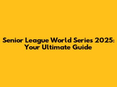 Senior League World Series 2025: Your Ultimate Guide